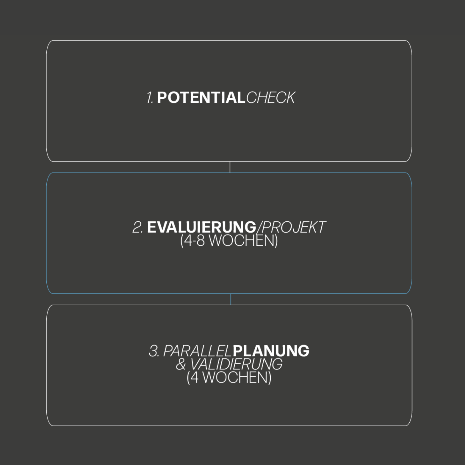An diesem Punkt setzt die Zusammenarbeit mit MEILLER an. Ausgehend von Ausgangslage, Zielkonflikten und den Erwartungen von MEILLER starten wir mit einem gemeinsamen Workshop. Dabei erfassen wir die relevanten Planungslogiken, Abhängigkeiten und Prioritäten.